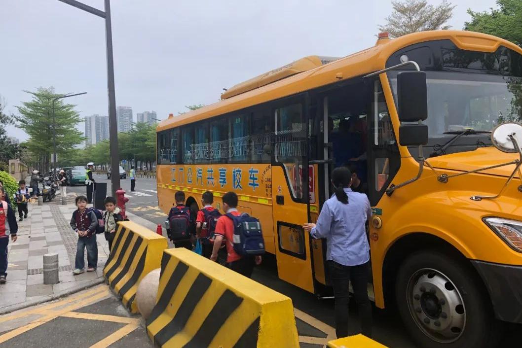 每周五17時, 12輛明黃色定制公交 從江海區景賢實驗學校準時出發, 開啟“一鍵通勤”模式,載著462名學生 從“校門口”直達“家門口”。 作為全市首個開通......